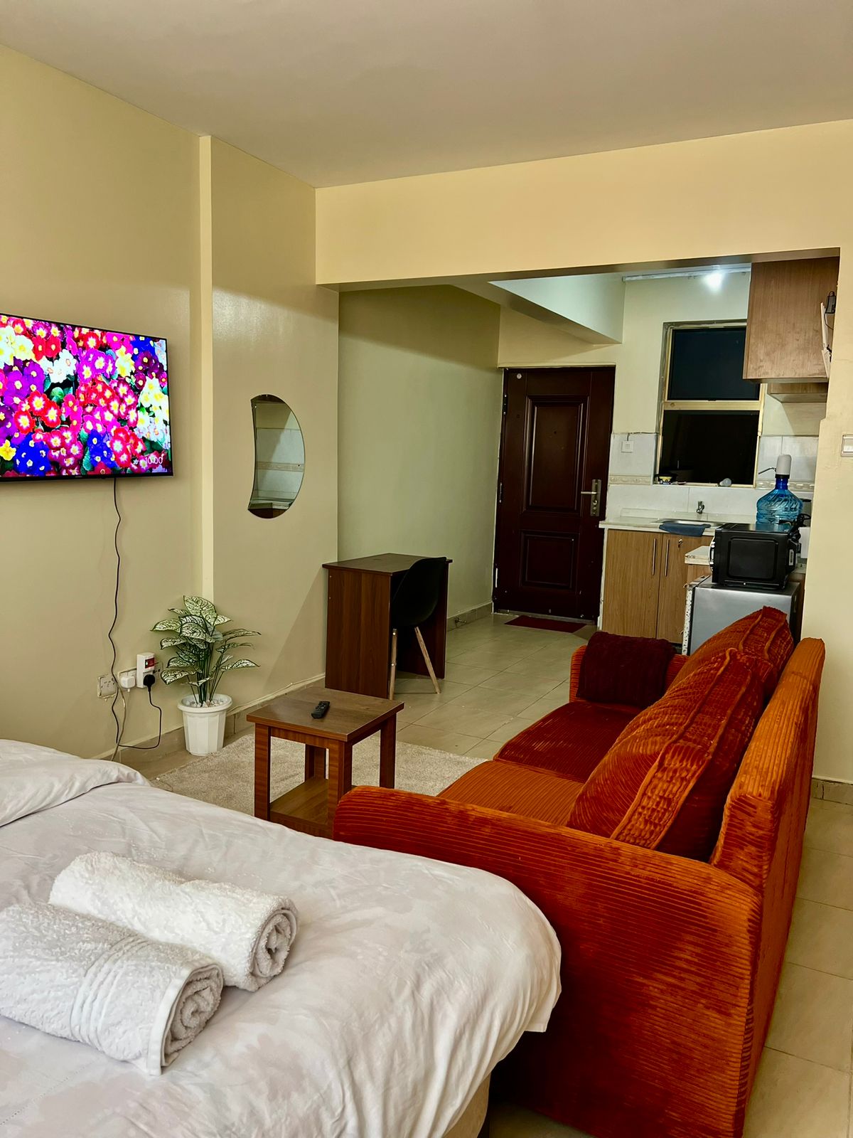 Uživajte u urbanom luksuzu u našem studio apartmanu u centru grada sa raskošnim bračnim krevetom. Smještena u mirnoj i bezbjednoj četvrti Lavington, na samo 8 minuta hoda od živahnog tržnog centra Junction, naša zgrada nudi niz sadržaja, uključujući osvježavajući bazen, potpuno opremljenu teretanu, šarmantnu ognjište i prostor za roštilj – sve u lijepo uređenom dvorištu. Osim toga, uživajte u zabavi na našem impresivnom televizoru od 70inča sa besplatnom pretplatom na Netflix.