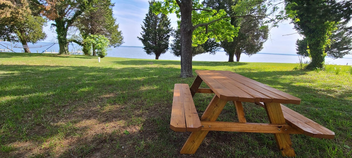 Naša klasična seoska kućica ima predivan prostran pogled na rijeku Potomac. Probudite se uz zadivljujući izlazak sunca i uživajte u kafi na našem prednjem tremu ili sedite i opustite se na našem privatnom pristaništu. Naš dom je opremljen udobnom posteljinom, potpuno opremljenom kuhinjom, Smart TV-om, Wi-Fi mrežom i skrovitom trpezarijom na otvorenom sa plinskim roštiljem, ognjištem i ograđenim dvorištem. Udaljeni smo samo nekoliko blokova od javne plaže, prodavnica u centru grada, šetališta i restorana. Iznajmljivanje golf kolica može da se rezerviše preko lokalnih preduzeća