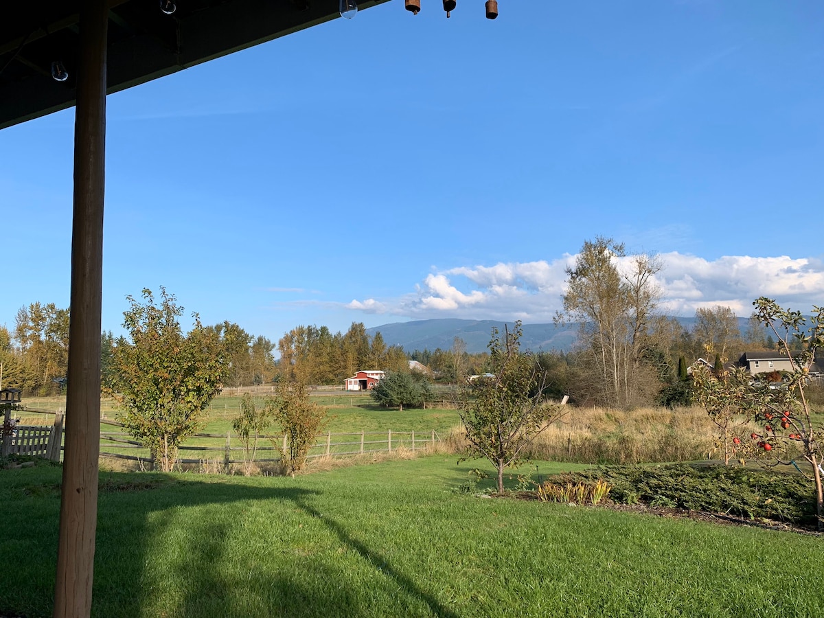 Posjetite našu minijaturnu seosku kuću smještenu među seoskim pejzažima. Probudite se uz pogled na močvare iz kreveta, uživajte u čarobnom posmatranju zvezda sa terase ili kroz nadsvođene plafone. Povucite navlake i posmatrajte vetrove. Ponesite čizme i prošetajte poljima da biste posetili različite ribnjake na našoj farmi ili avanturistički pređite na put do obližnje reke Nooksack. Gledajte zalaske sunca dok roštiljate na privatnoj terasi. Probudite se i doživite neverovatan jutarnji izlazak sunca iznad planine Bejker.