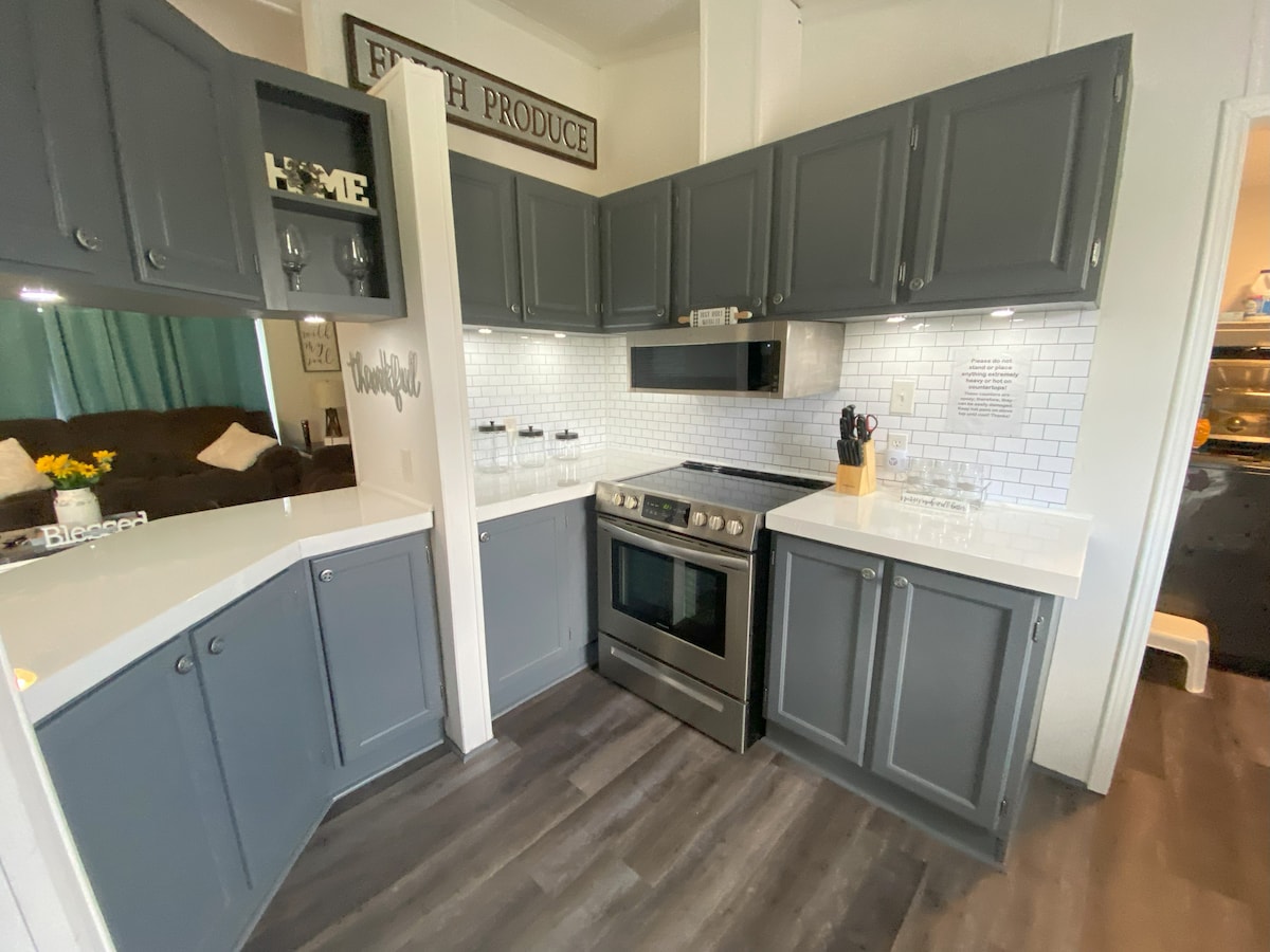 • Mnogo parkinga 3-4 vozila i prikolica • Mašina za pranje i sušenje veša u punoj veličini sa deterdžentom • Kauč na razvlačenje u bonus sobi za 8. + 9. gosta • Dušek na naduvavanje je dostupan za 10. gosta • Potpuno opremljena + opskrbljena kuhinja • Brzi pouzdani internet od 250 Mbps • 65+ strimovanje TV kanala sa Amazon Firestickom • Obezbeđena je stolica za hranjenje i Pack-n-play • Tesla EV zidni punjač za do 48 ampera Glavni stanar mora da ima bar 21 godinu.