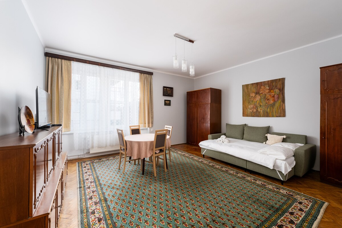 Udoban stan (30 m²) u mirnom, zelenom okrugu Prokocim-Bieżanów. Savršeno za turiste, poslovne putnike ili za medicinske svrhe. Blizu dječije bolnice u Prokocimu i bolnice u ulici Jakubovski, samo 6 minuta do rudnika soli u Velički. Pored zgrade se nalazi bazen i restoran sa ukusnim doručkom. Odličan pristup centru Krakova i aerodromu Balice zahvaljujući obližnjem izlazu na A4.