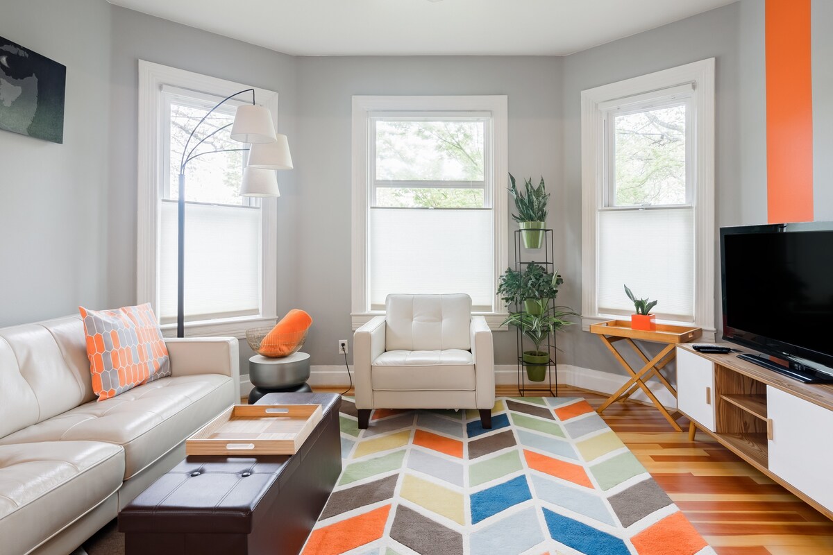 Pomirišite cvet trešnje sa trijema u uglu. Unutrašnjost, zidovi, podovi i namještaj ispijaju sa zabavnim, svežim bojama. Svetlost ulazi u sunčanu kuhinju kroz prozore, vrata i svetlarnike. Biljke i umjetnički otisci birepa u optimističnim prostorima. NOVOSTI: Novi ažurirani HVAC sistem u novembru 2022. godine, tako da je sada udobnija kontrola temperature za letnje i zimske mesece na drugom spratu!
