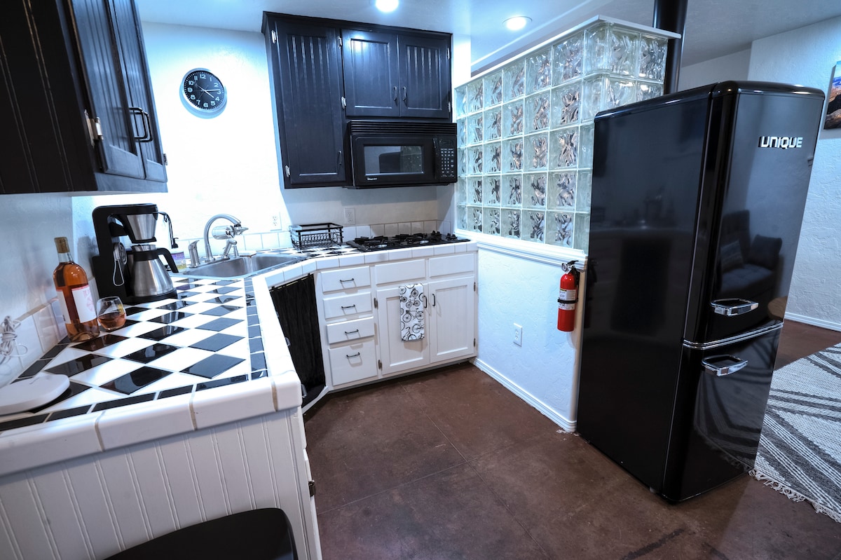 1BR/1BA Blonde Bungalow with/queen bed one door from Historic Route 66 in Downtown Williams. Jednostavan pristup biciklističkim i planinarskim stazama. Šetnja do železničke pruge Grand Kenjon, Avanturističkog parka Kanjon i Route 66 Zipline. Odlična baza za putovanja u Veliki kanjon, Flagstaf, Sedonu i Snowbowl. Brzi Wi-Fi, pametni televizori u dnevnoj i spavaćoj sobi. Mašina za pranje/sušenje veša u punoj veličini. Potpuno renoviran 2023. godine sa novom klimom i grijanjem. Potpuno ograđeno dvorište sa ognjištem, Adirondack stolicama, roštiljem i stolom za piknik. Parkiranje na prilazu.
