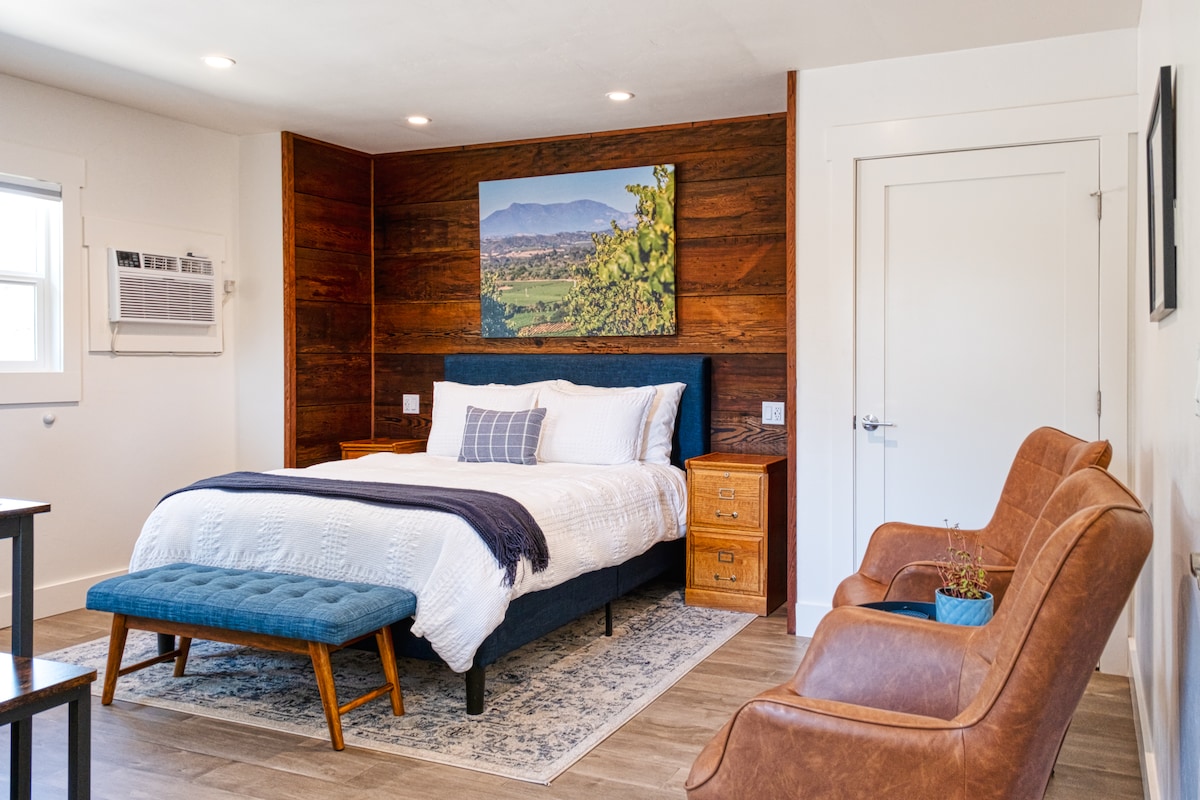 Relax in this charming one-bedroom Wine Country retreat, perfect for extended stays and monthly bookings. Featuring a private queen bedroom, full bathroom, and full-size pullout sofa, it’s ideal for couples, traveling nurses, remote workers, and wine club members. After a day of work or wine tasting, unwind in a quiet, comfortable space with easy access to local wineries, dining, and Wine Country attractions. A cozy alternative to a hotel, designed for longer, more relaxed stays. 🍷🏡