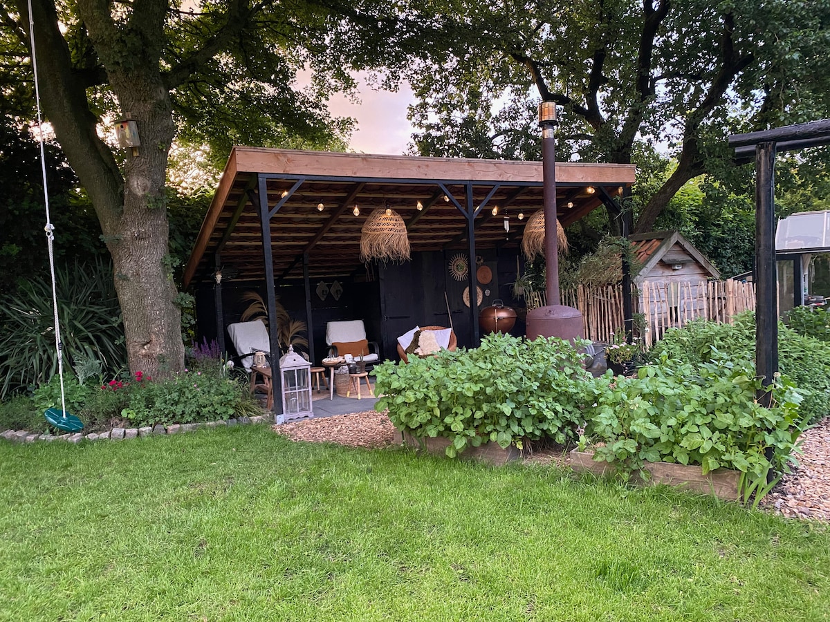 Uživajte u miru u našoj udobnoj samodovoljnoj seoskoj kućici sa prelijepom baštom. Seoska kuća domaće izrade s okom za ponovnu upotrebu i starinskim stvarima. Okupajte se, provjerite da li je suva WC šolja za vas, saznajte ideje za svoju malu seosku kućicu. Popijte kafu u bašti i posmatrajte kako se stvara naša jestiva bašta:)Uživajte u prirodi Groningena i provedite dan u gradu! Ima mjesta za dvije odrasle osobe i dijete do 5 godina.
