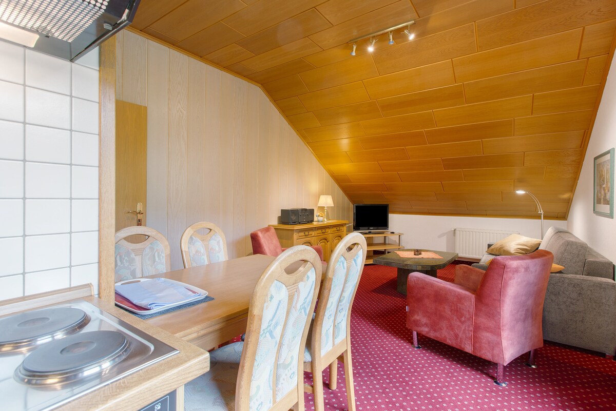 Stan se nalazi u centru spa centra Bad Vildua, odmah pored * **Göbel 's Hotel Quellenhof. Sadržaji hotela sa restoranom, barom, konzervatorijumom, kazinom mogu se koristiti uz naknadu, korišćenje spa centra sa unutrašnjim i spoljašnjim bazenom, hidromasažnom kadom, saunama i teretanom uključeni su u cenu apartmana.