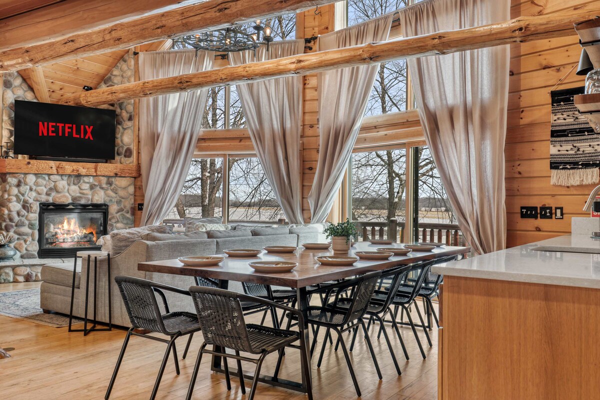 Pobjegnite u ovu mirnu brvnaru na vodi, nudeći odlične sadržaje tokom cijele godine! Savršen je za porodice, prijatelje ili bilo koga ko želi odmor za vikend. Uživajte u šolji kafe na terasi sa pogledom na jezero Mus i prirodnim ljepotama Nacionalne šume Čekamegon. Ova udobna brvnara nudi miran ambijent, odličan ribolov, lov, planinarenje i jednostavan pristup stazama za terenska vozila i motorne sanke za svako godišnje doba. Jezero odvodi 4' počevši od 15. oktobra, a naš dok postaje nedostupan.