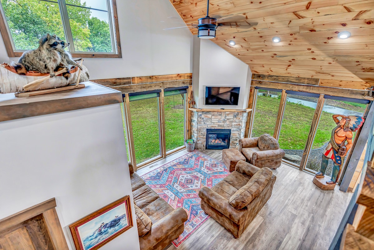 Opustite se u ovoj jedinstvenoj, ručno izgrađenoj, rustikalnoj brvnari. Smješten visoko na litici s nevjerovatnim pogledom na rijeku Misisipi. Sjednite oko logorske vatre sa porodicom i prijateljima i uživajte u miru na otvorenom sa pogledom za pamćenje! Opustite se u hidromasažnoj kadi na otvorenom dok posmatrate zvijezde. Tri spavaće sobe i tri kupatila u ovoj novoizgrađenoj brvnari. Otvorenog tlocrta sa prelijepim kamenim kaminom.