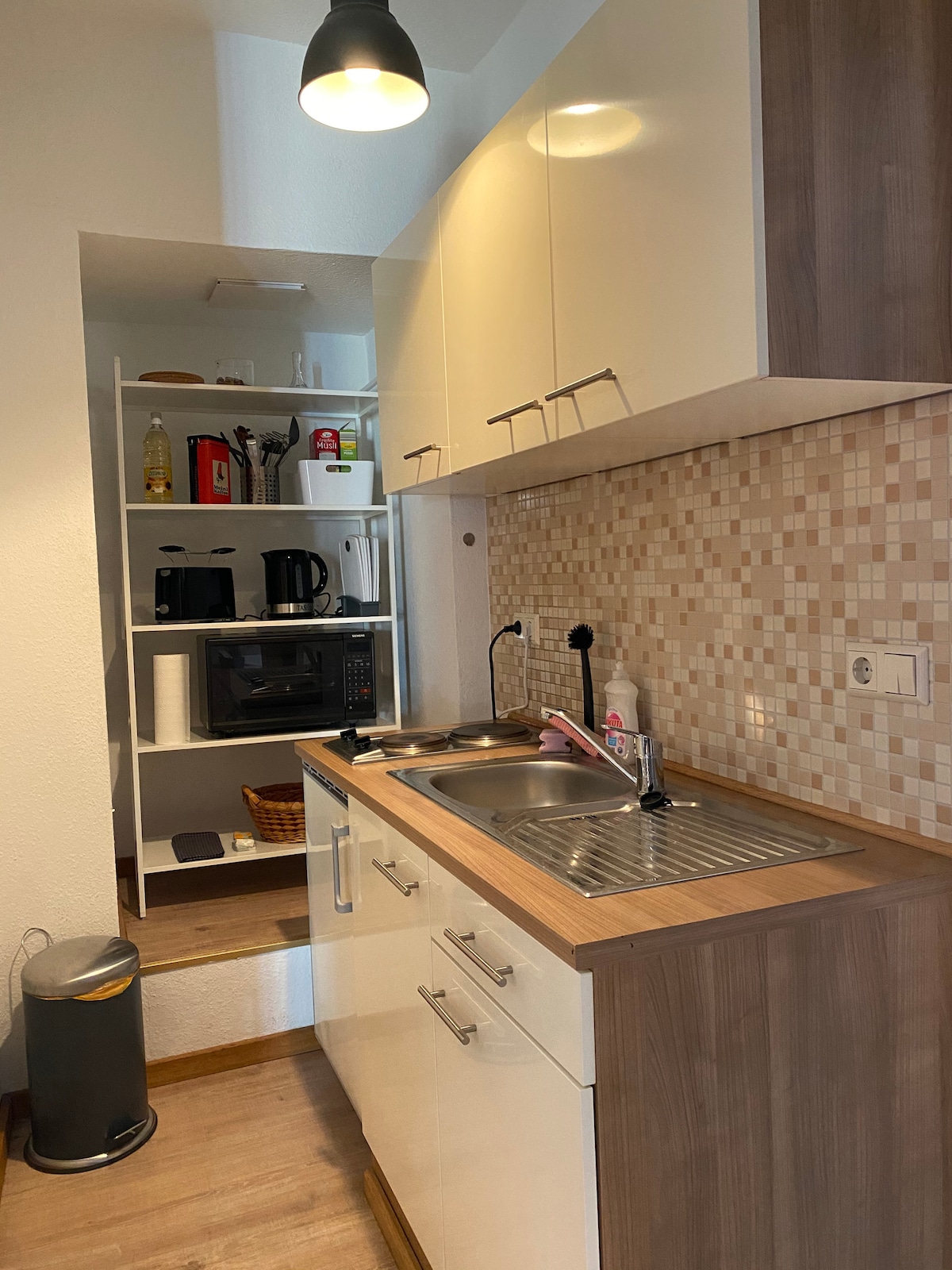Pomorski šarm spaja urbani život: Naš elegantni stan za dvoje udaljen je samo nekoliko koraka od željezničke stanice – sa zidom od klinkera, udobnim bračnim krevetom i otvorenom kuhinjom. Uživajte u opuštenim večerima uz Netflix i Prime. Stari grad i more su lako dostupni. Živahna, centralna i tipična hanzeatska. Parking je moguć u ovom području. Dobro došli u srce Stralsunda!