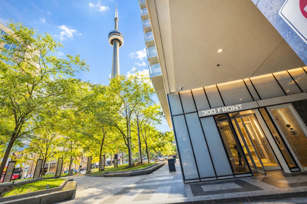 Doživite centar Toronta u elegantnom kondominijumu! Započnite dan u svijetloj kuhinji i uživajte u kafi na balkonu. Opustite se uz Netflix nakon što istražite grad. Prošetajte do CN tornja, Rodžers Centra, Riplijevog akvarijuma, izložbenog mjesta, restorana i obale. Potpuno opremljena kuhinja, Keurig, 2 radna stola. Zgrada ima bazen, hidromasažnu kadu, saunu, teretanu, sezonski roštilj na krovu, besplatan parking i samostalnu prijavu. Popusti na boravke od 7 ili više noćenja i rezervacije bez prava na povraćaj novca. Rezervišite svoj nezaboravan odmor u Torontu već danas.