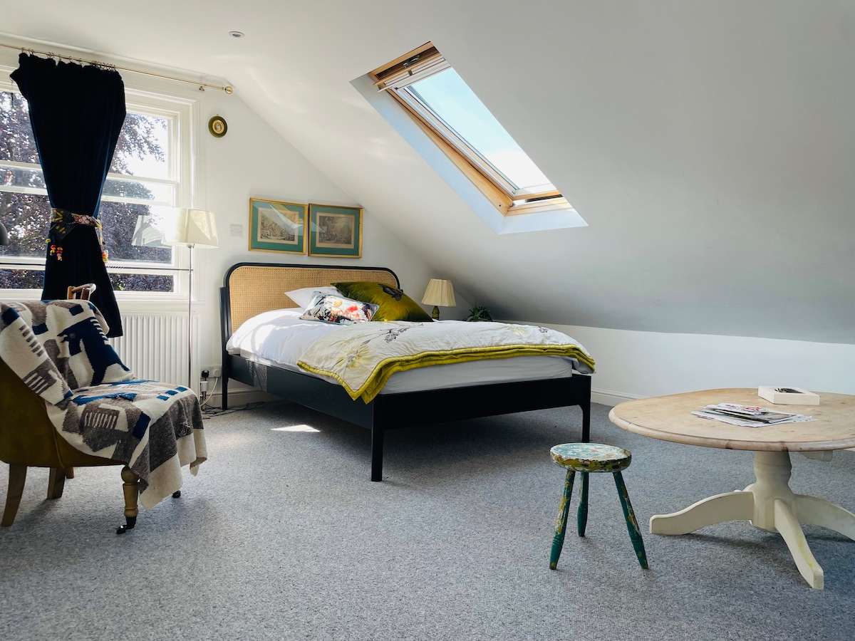 Mirna spavaća soba u potkrovlju u centru grada.