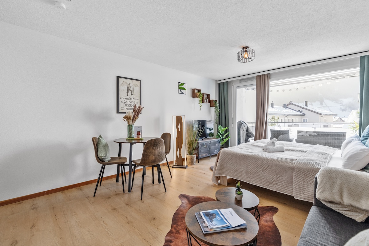 Savršena lokacija u Engelbergu: Samo 3 minuta hoda do gondole Titlis i 5 minuta do centra grada i željezničke stanice. Udoban, renoviran studio odlikuje se modernim alpskim stilom sa elegantnim detaljima. Uključuje moderno kupatilo i balkon sa zadivljujućim pogledom na planine, savršen za opuštajuća jutra. NAPOMENA: Studio se nalazi u blizini puta i u starijoj zgradi sa tanji zidovima, tako da ne nudi potpuni mir/tišinu, ali ima mnogo drugih prednosti. Parking je besplatan.