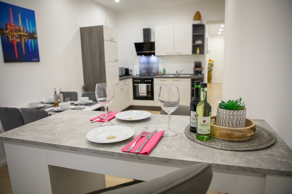 Dobro došli u naš poslovni stan. U centru grada Vorsfeldea, nudimo vam naše apartmane. Potpuno opremljena kuhinja, moderno kupatilo i potpuno namješten dnevni boravak nude sve što vam je potrebno za boravak u Volfsburg Vorsfeldeu. Naše usluge čišćenja su uključene u cenu. Pored toga, imate priliku da svojoj rezervaciji dodate doručak iz naše bogate i raznovrsne ponude.