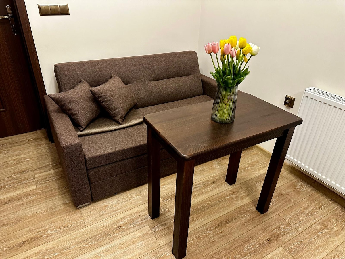 Elegantna garsonjera površine oko 25 m², namijenjena za dva odrasla gosta koji cijene udobnost i blizinu mora. Stan se nalazi u modernom ApartPark kompleksu, na samo nekoliko koraka od plaže i užurbane šetališne zone. Unutrašnjost je uređena u modernom stilu i opremljena udobnim bračnim krevetom, funkcionalnom čajnom kuhinjom sa opremom, kupatilom sa tušem i balkonom. Osim toga, gostima će biti na raspolaganju i brza Wi-Fi mreža i TV.