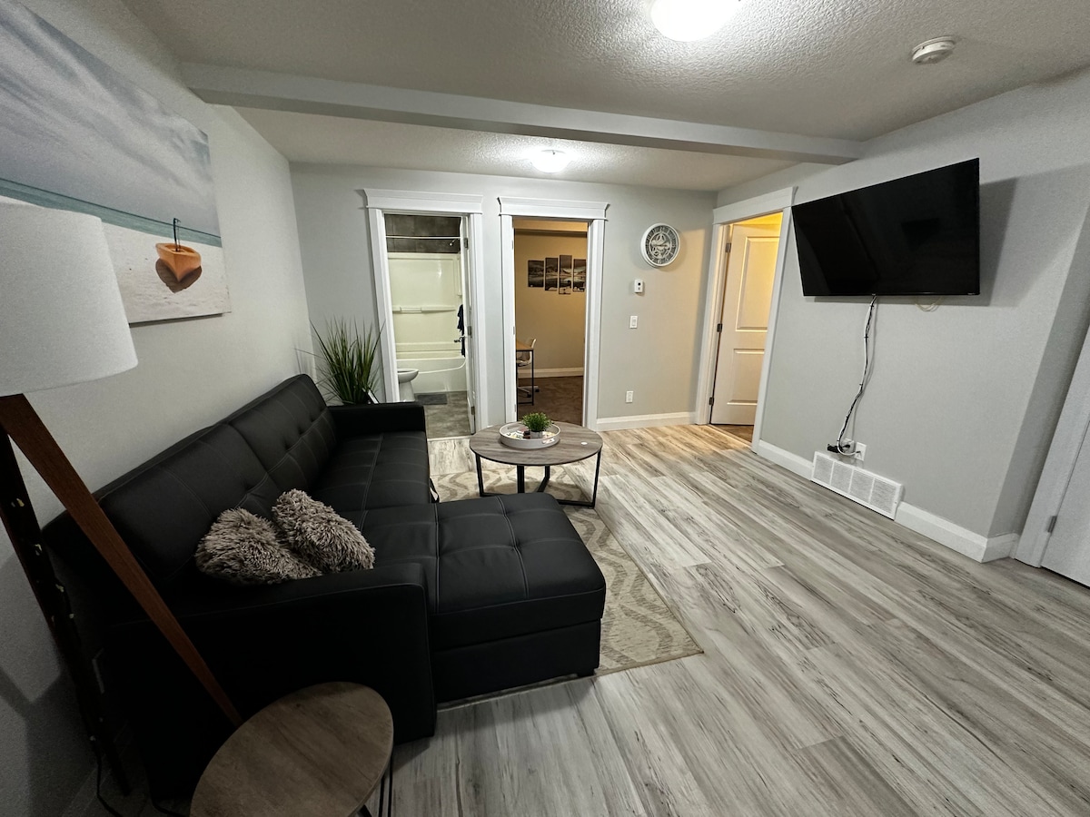 Kako bismo osigurali udobnost svih naših gostiju, ovaj objekat je 100% nepušački/vejping i bez kućnih ljubimaca, uključujući sve spoljne prostore. Ovaj svijetli, udobni dvosobni apartman nalazi se u mirnoj ulici, na maloj udaljenosti od lokalnih sadržaja i sistema Birchwood Trail. Apartman ima potpuno opremljenu kuhinju, bračni krevet, dva odvojena kreveta, vešeraj, internet i dva pametna televizora sa pristupom popularnim aplikacijama za striming. Postoji i privatni ulaz sa ulazom bez ključa za samostalnu prijavu.