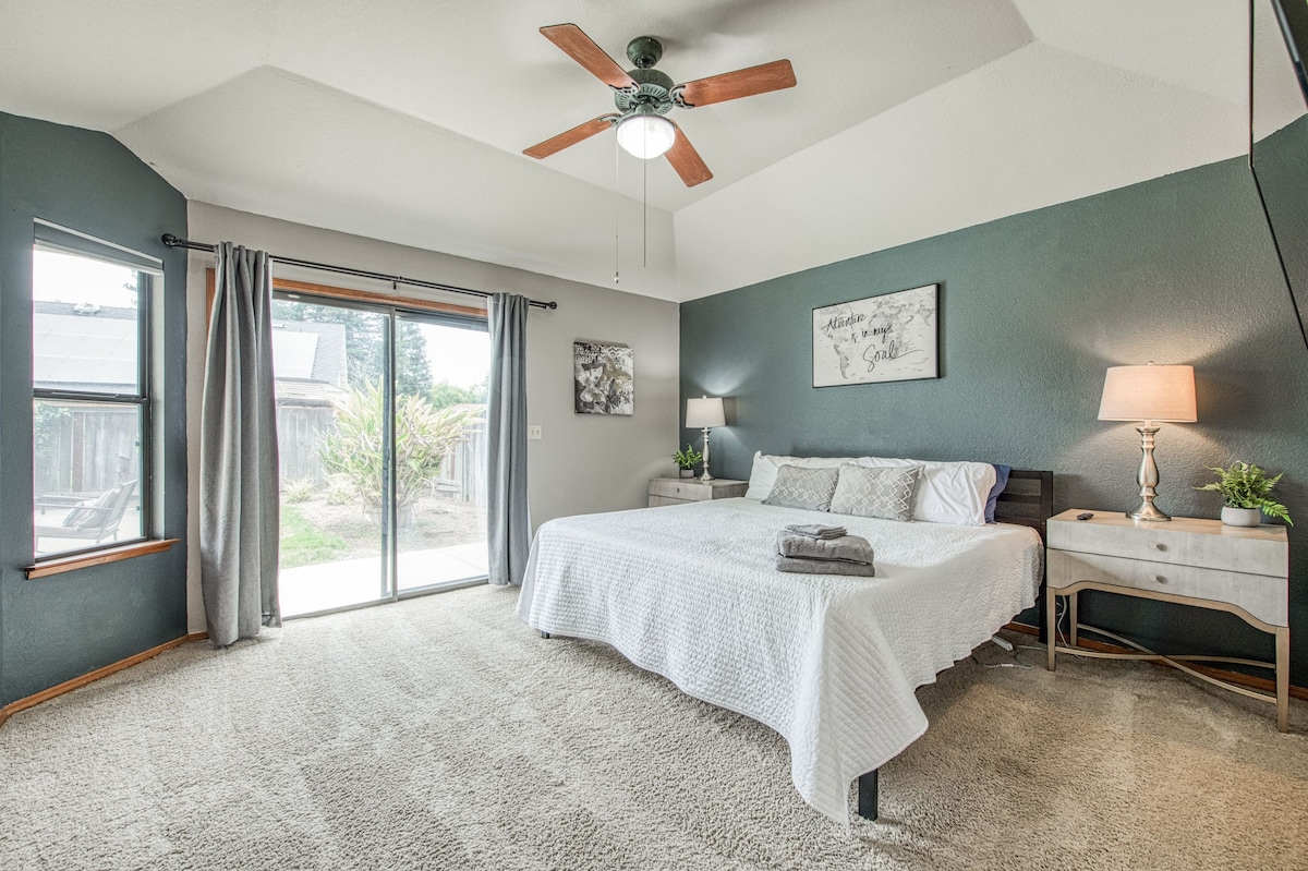 Dobro došli u naš zapanjujući Airbnb u glavnom severoistočnom Fresnu! Ovaj savremeni skriveni dragulj nudi stil i udobnost. Odmorite se na hibridnom dušeku King memorijske pene ili dušeku od memorijske pene kraljice. Uživajte u potpuno opremljenoj dizajnerskoj kuhinji, pametnim televizorima i besplatnom Wi-Fi mreži. Želite li da radite od kuće? Nema problema! Pronađite kancelarijski prostor ovde. Restorani/ pijace u krugu od milje. Vudvord Park, udaljen samo 5 minuta. Nacionalni park Yosemite, udaljen 1,15 sati