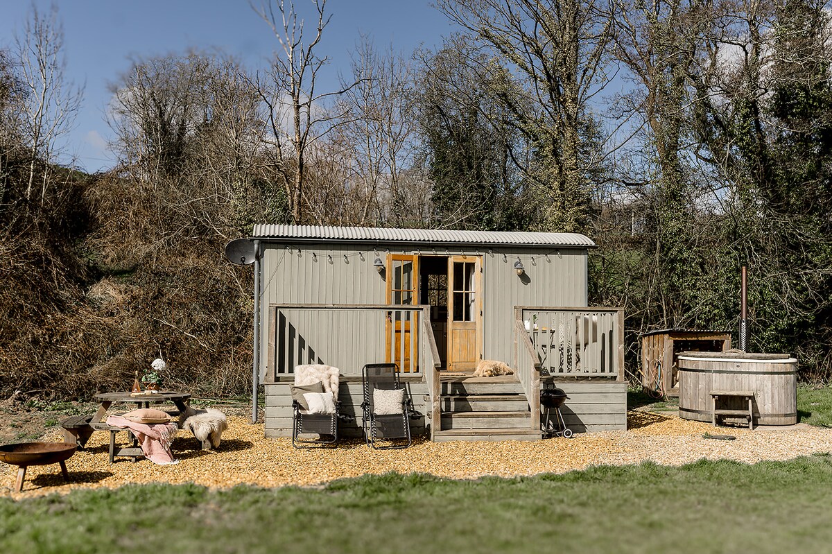 Smještena u mirnoj šumi na radnoj farmi ovaca u prelijepom Šropširu, naša ručno izrađena brvnara s kupatilom nudi zadivljujući pogled na dolinu i šumu. To je savršeno mjesto za isključivanje i opuštanje — uživajte u ugodnim noćima uz peć na drva ili izađite na terasu da gledate zvijezde u potpunom miru. Živopisne šetnje počinju odmah pred vašim vratima, a imamo sreću da je poznati Ofin put udaljen samo nekoliko koraka od brvnare.