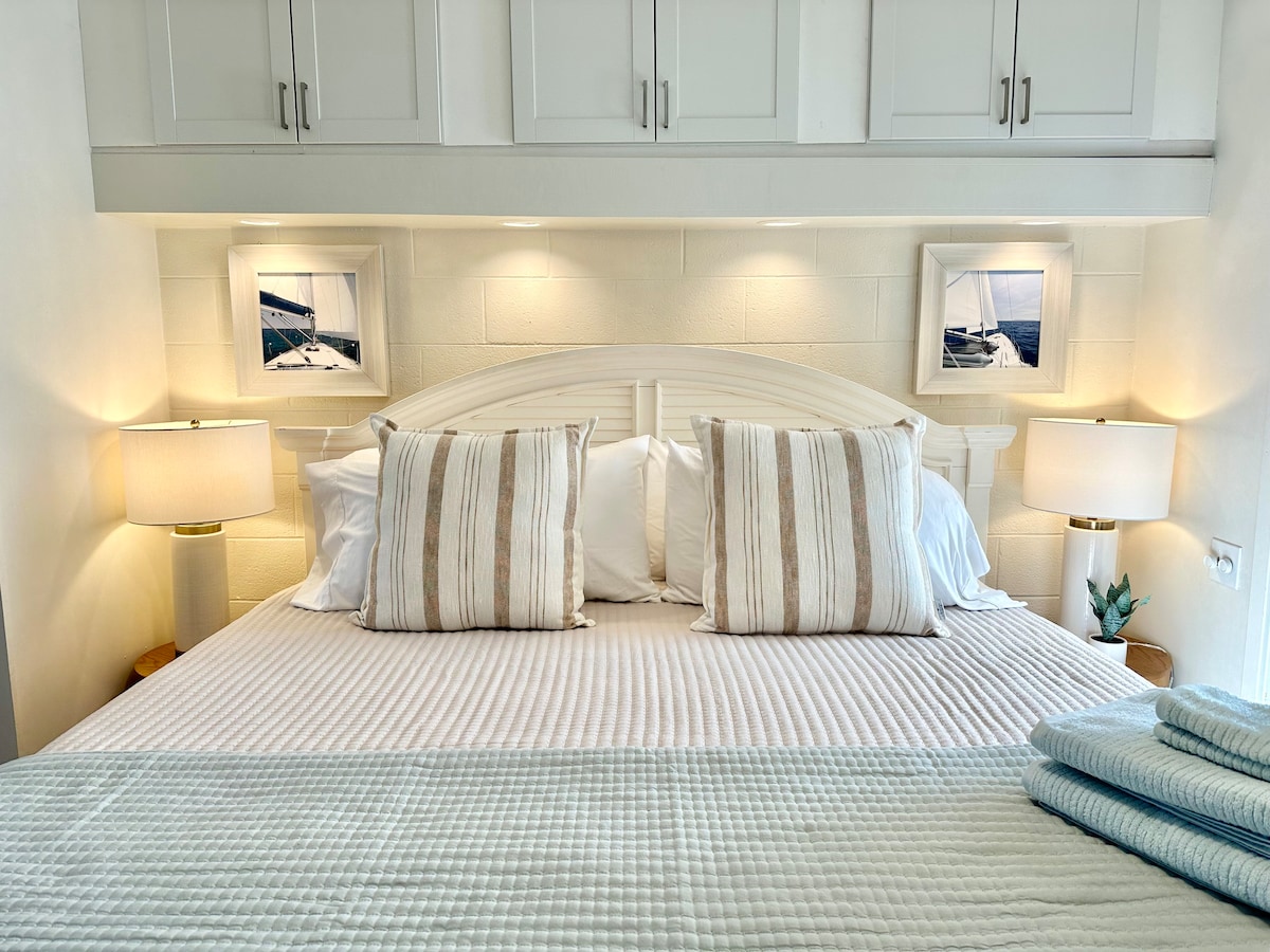 Osjećajte se kao mještanin u ovoj nedavno renoviranoj, jedinstvenoj jedinici koja se nalazi pored plovnog puta Intracoastal. Ne morate da tražite parking! Prošetajte do mnogih popularnih restorana; prošetajte preko mosta i prošetajte petljom. Samo šest minuta VOŽNJE BICIKLOM do plaže. Slani pelikan je svijetao i čist sa luksuznom posteljinom. Boravite nekoliko noći ili nekoliko sedmica, vaš je za boravak na plaži/poslovnom boravku.