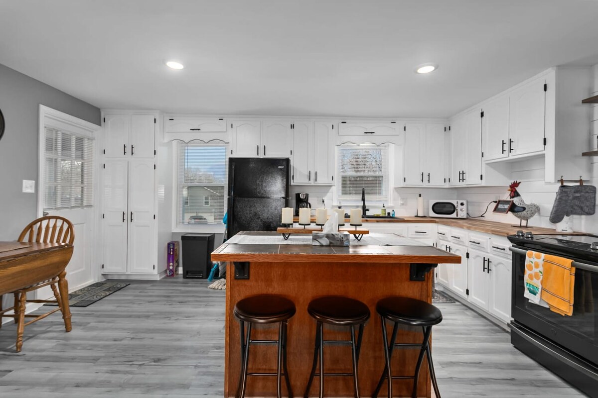 Seoska kuća Hadley je odlično mjesto za porodični odmor ili savršeno za vaše poslovne potrebe. Ova šik i moderna seoska kuća udaljena je 3 minuta od autoputa I-35 i nalazi se na pogodnoj lokaciji kako biste brzo stigli bilo gdje u KC metro. Ovo je miran kraj sa širokim trotoarima, a restorani i prodavnice su na pešačkoj udaljenosti. Koliba ima renoviran enterijer iz 2022. godine, ogromno ograđeno dvorište i dugačak prilaz za dovoljno prostora za parkiranje.