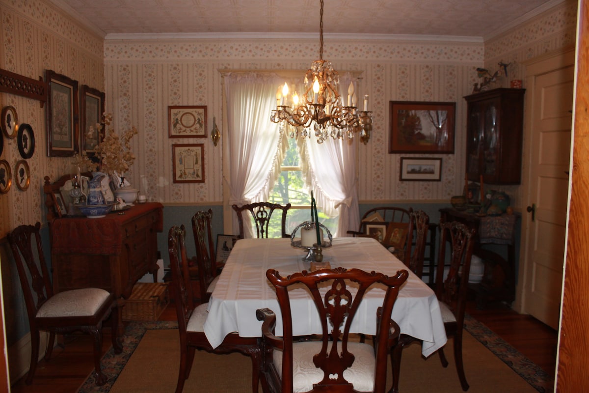 Ova seoska kuća s kraja 19. vijeka prelijepo je obnovljena kako bi uključivala originalni drveni pod u cijelom smještaju, ali je opremljena svim najvažnijim izmjenama iz 21. vijeka (grijanje, tekuća voda, struja, Wi-Fi). Naš dom sa 3 spavaće sobe/ 1 kupatila savršen je za opuštajući odmor za parove, prijatelje ili porodice, bilo da želite da poslužite obrok u 3 jela za našim starinskim stolom u trpezariji ili da se opustite za stolom za piknik dok pečete u našem spoljašnjem kaminu.