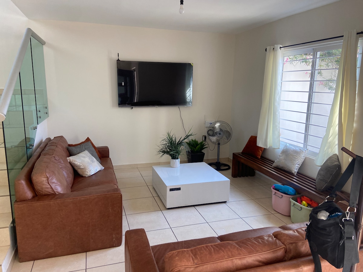 Horario de entrada: a partir de las 3pm (en ocasiones es antes), horario de salida: 12 del mediodía como máximo. Cuenta con excelente ubicación, 3 recamaras, 3 camas, 2 baños completos, un medio baño, sala, cocina integral, comedor, patio trasero, cochera con 2 espacios.