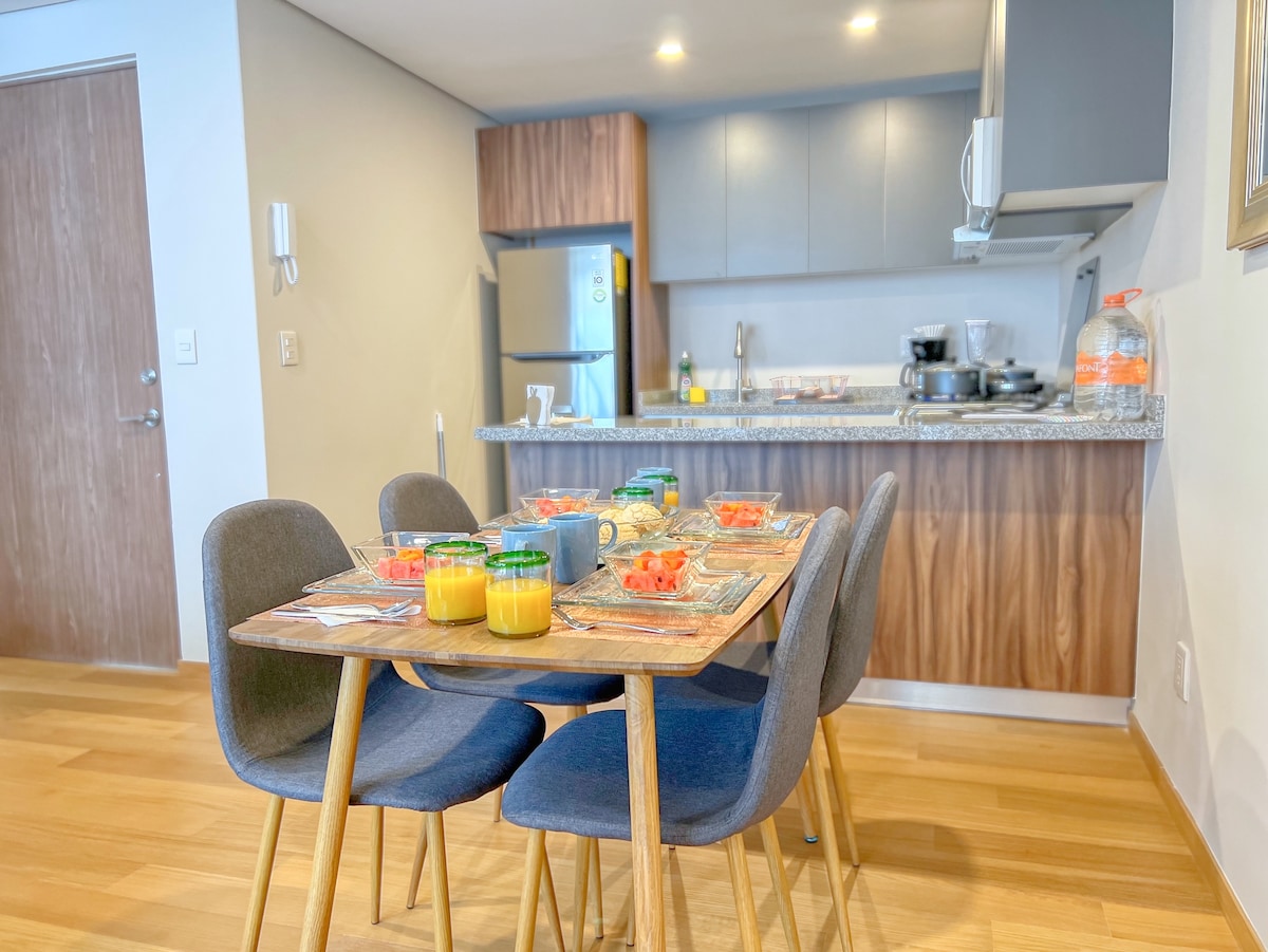 Super udoban potkrovlje, novo, funkcionalno, koje pored toga što vam pruža sve što vam je potrebno, ima zajedničke prostorije u kojima možete uživati u popodnevnim satima u sobi sa kaminom i klavirom, ili sunčanom jutarnjem vežbanju u kanalu za plivanje i teretani, uživajući nakon krovne bašte. Takođe možete da koristite zajedničku kuhinju i mašinu za pranje i sušenje veša. Vozite se biciklom i šetajte ulicama Kojoakana, što je nezaobilazno u gradu. 5 minuta hoda od metroa General Anaya.