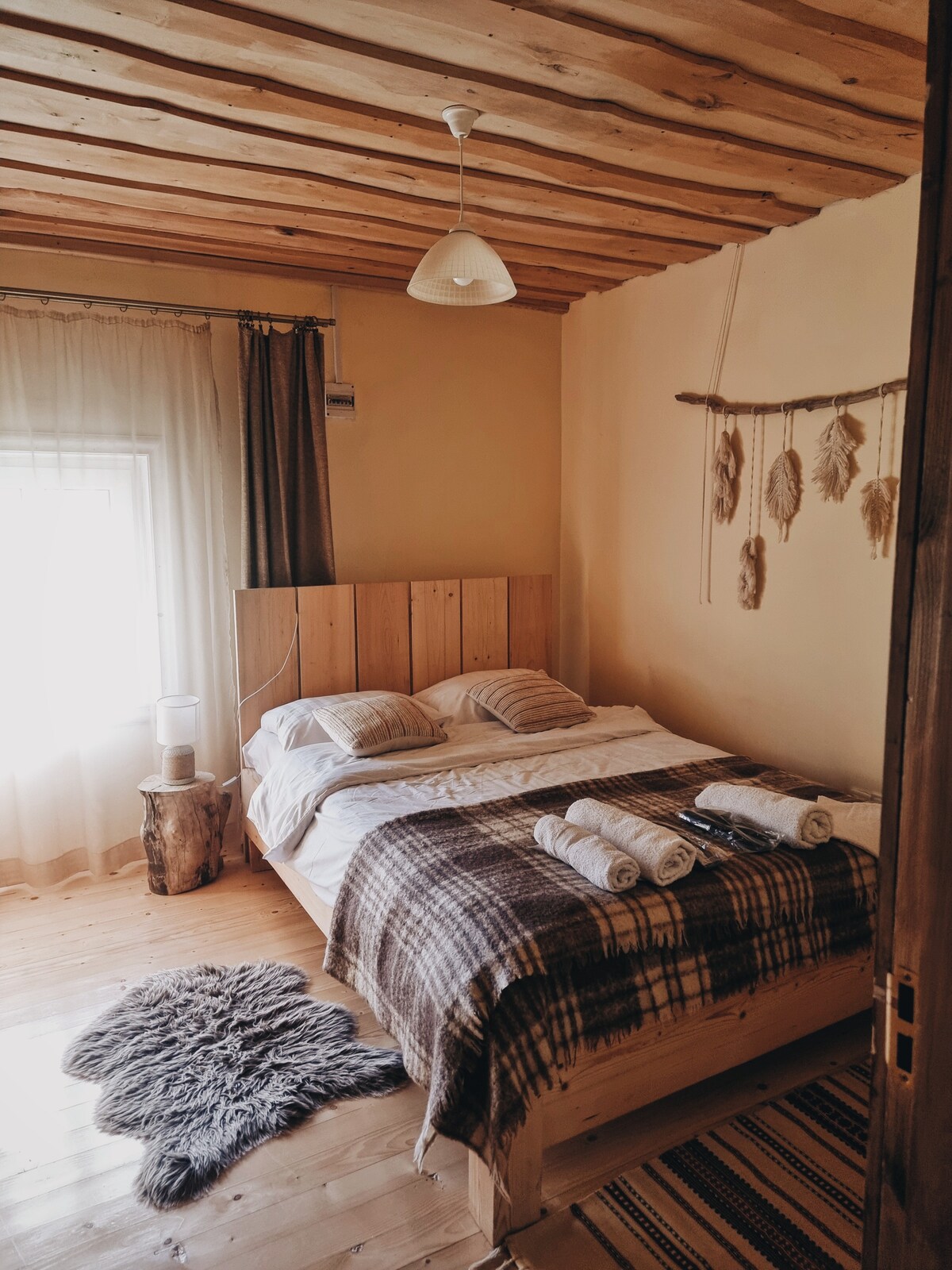Nova seoska kuća izgrađena 2024. godine. Samo 15-20 minuta hoda do centra grada. Supermarket, nova pošta, vati, terenska vozila i muzeji u blizini! Restorani, obilasci, bazar i autobuska stanica su lako dostupni. Bračni krevet i kauč na razvlačenje. Aparat za kafu za vaše jutarnje veselo raspoloženje. Kamin za prijatne večeri. Mašina za veš sa mašinom za sušenje veša radi praktičnosti. Velika prostrana terasa za opuštanje. Kvalitetna Wi-Fi veza radi čak i bez struje.