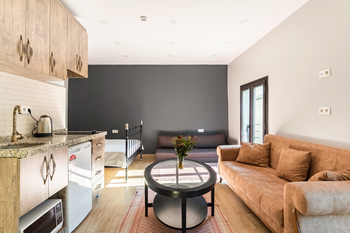 Imaćete veoma prijatan provod u ovom slatkom studio apartmanu sa terasom, koji se nalazi u centralnoj tački Istanbula, na mirnoj i predivnoj lokaciji i pažljivo pripremljen sa svojom nedavno završenom restauracijom. Ulaz u našu sobu na 4. spratu, bez lifta i malog prostranog prostora. Naša soba ima 1 bračni krevet, 1 kuhinju (u kuhinji nema umivaonika), 1 kupatilo i sto, Wi-Fi, pametni TV, klima-uređaj i balkon s terasom s kojeg se pruža nevjerovatan pogled.