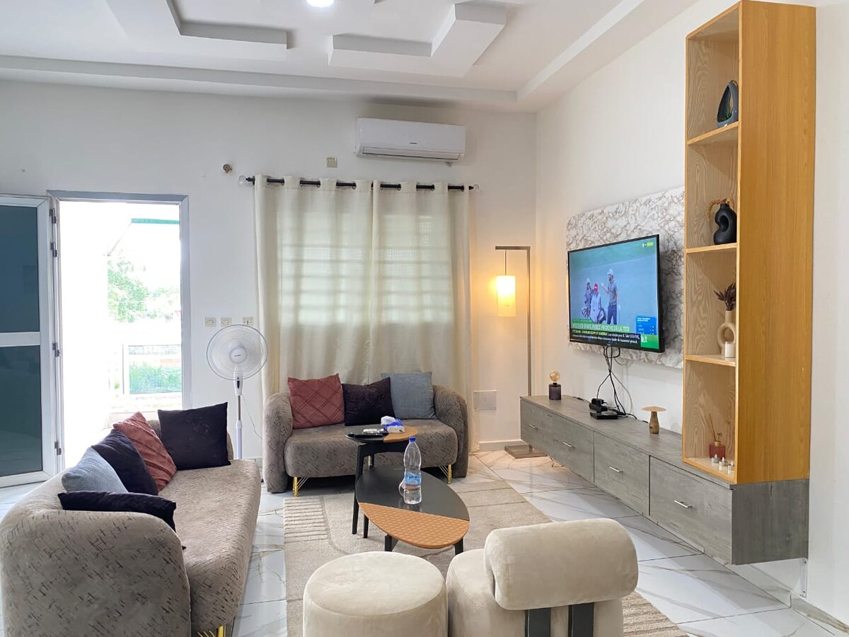 Seul, en famille ou entre amis, NE CHERCHEZ PLUS. Nous mettons à votre disposition une Résidence Meublée dénommée PREMIUM (2 Pièces) au sein d'une mini cité (LES RÉSIDENCES HARMONIE 5G) 𝐜𝐥ô𝐭𝐮𝐫é𝐞 𝐞𝐭 𝐬é𝐜𝐮𝐫𝐢𝐬é𝐞 avec +20 places de parking gardé au quartier Résidentiel Ambassade, situé à 3 minutes du Stade Charles Konan Banny. Accès facile. Cuisine entièrement équipée (Micro-ondes & Mixeur) - Gazinière 4 Feux et Four - Réfrigérateur - Chauffe-eau- TV (Canal)