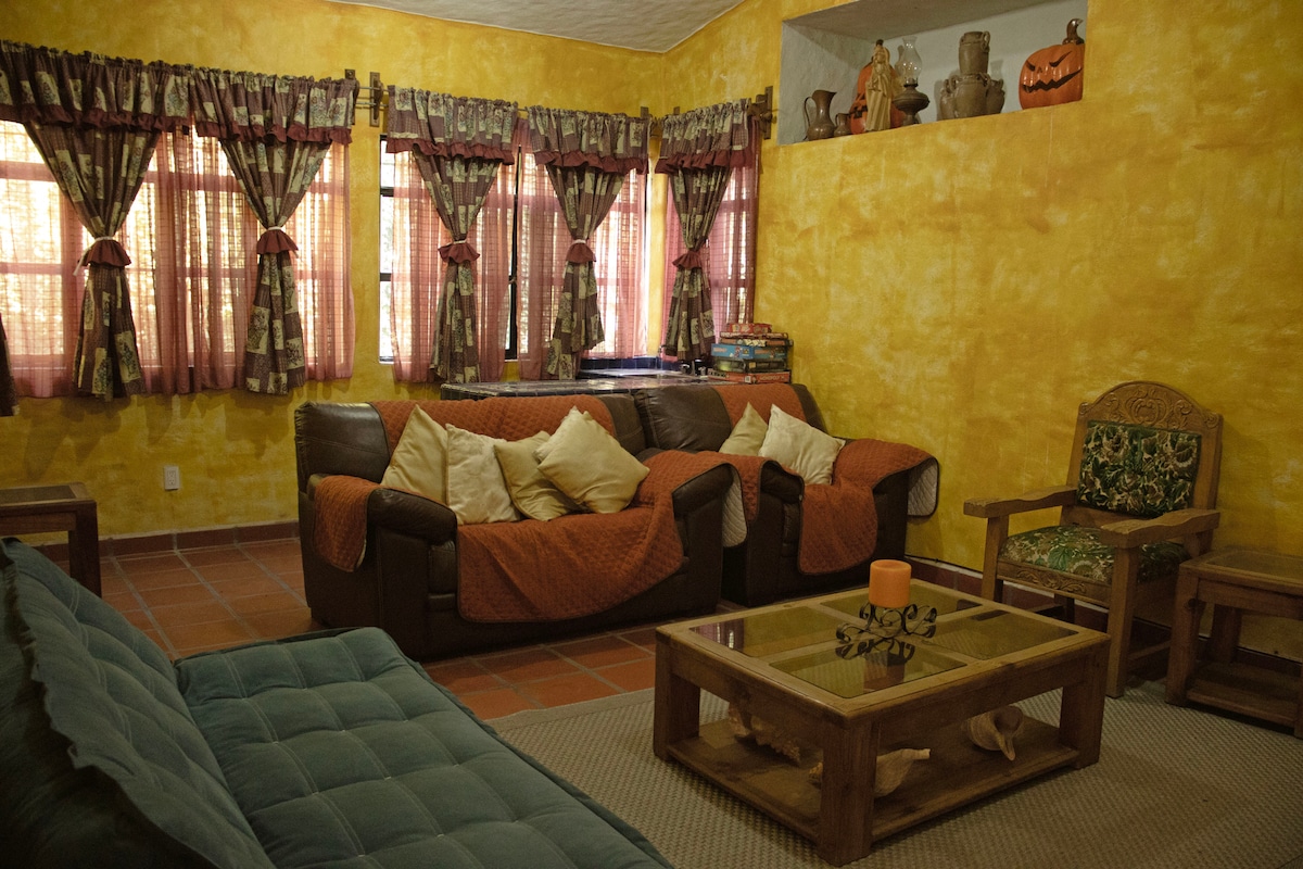Udobna kuća za odmor u predgrađu Oaxtepec. Veliki bazen je osvetljen i opremljen solarnim zamkama tako da je voda obično umerena između 27-31 °C. Jacuzzi se može grejati gasnim kotlom za maksimalno uživanje (dodatni trošak). Bluetooth zvučnici za muziku u području bazena. Sobe i salon imaju TV ekrane sa uključenim Amazon Prime Video. Kuća ima brzi internet od 100 megasa idealan za kućnu kancelariju.