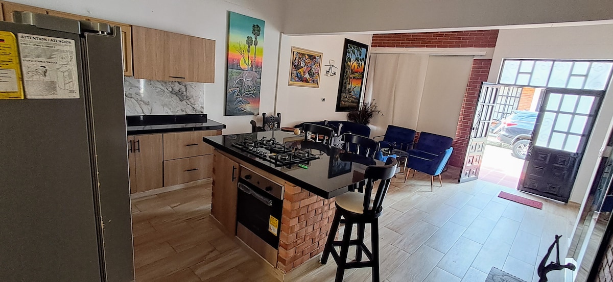 Opustite se u ovom mirnom smještaju. Studio apartman opremljen: Prostrana soba, bračni krevet (180–220 cm), garderober, TV od 65 inča, noćni stočić. Prostor sa dnevnom sobom i trpezarijom. Prostrano kupatilo. Kuhinja sa osnovnom opremom. Parqueadero.