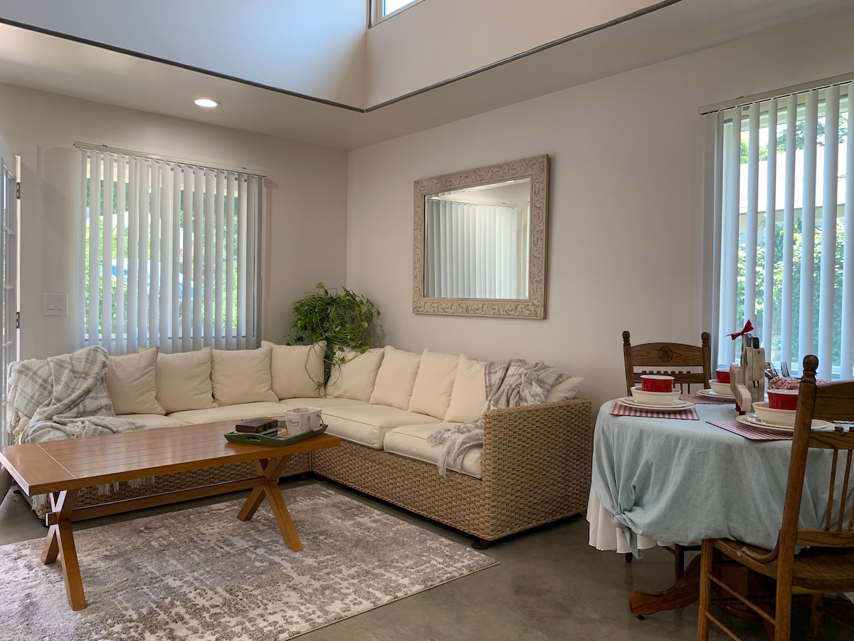 Novoizgrađena, privatna jedna spavaća soba, jedna kupatilo sa velikim spoljašnjim dvorištem. Potpuno je namješten i u potpunosti opremljen kuhinjskim aparatima i predmetima za kuvanje kod kuće. Nekoliko minuta od centra Santa Ane, ovaj dom je u blizini za sve što OC ima da ponudi: Diznilend, Knott 's, Njuport i Hantington Bič, South Coast Plaza, Angel Stadium i još mnogo toga! Imajte na umu da, iako je jedinica pričvršćena za glavnu kuću, postoji zaseban ulaz i da nema direktnog kontakta sa vlasnikom.
