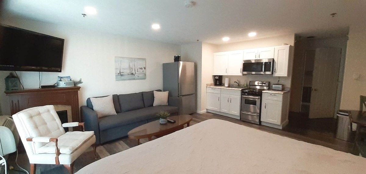 Otkrijte privlačnost prenoćišta Blue Whale Inn, elegantnog jednosobnog smještaja u istorijskom Saut Endu u Portsmutu. Ovaj kolonijalni dragulj iz 1750-ih besprekorno objedinjuje modernu udobnost - sa bračnim krevetom, električnim kaminom i kompletnom kuhinjom - sa istorijskim šarmom. Opustite se u infracrvenoj sauni za 2 osobe ili se opustite u samostojećoj kadi. Uživajte u jutarnjoj kafi na terasi sa pogledom na rijeku Piscataqua. Savršen spoj praktičnosti i spokoja za nezaboravan odmor u Portsmutu.