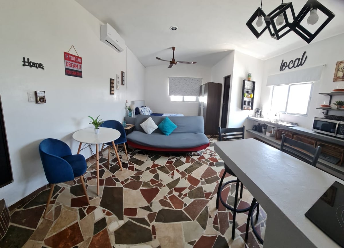Depto tipo estudio, moderno, cómodo y bien equipado, ideal para trabajo o descanso, ubicado al norte de Mérida (no centro), con acceso rápido a centros comerciales, restaurantes y Puerto Progreso. Galerías y Gran Plaza a 5 min; La Isla y Altabrisa a 15 min. Se entrega limpio y listo para cada huésped. Por uso continuo, algunos elementos pueden presentar desgaste leve sin afectar su limpieza. Cualquier detalle se atiende de inmediato.