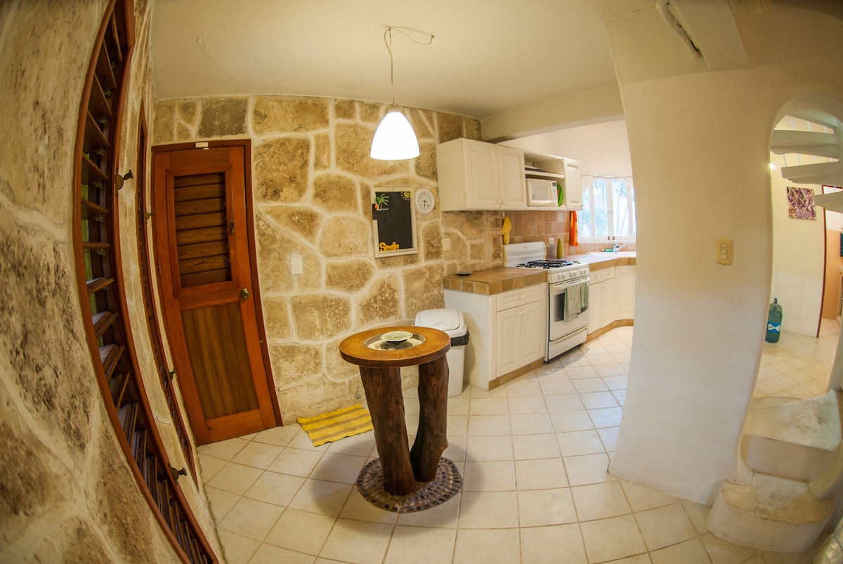 Boravite u srcu džungle u Tulumu! Probudite se uz pjevanje tukana i plivajte u kristalno čistim cenotima, svega nekoliko koraka od vaše kuće na drvetu. To je savršeno mjesto za ljubitelje prirode i avanture gdje ćete pronaći mir, povezanost i ljepotu! Nalazi se 100 m od Cenote Dos Ojos, a i dalje je blizu plaže i centra Tuluma ✔ Parking ✔ Terasa ✔ Osmatračnica ✔ Wi-Fi (Starlink) - ✔ 2 bračna kreveta (širine 150–179 cm) (4 odrasle osobe) ✔ Kauč na razvlačenje (1 odrasla osoba) ✔ Čajna kuhinja ✔ Kupatilo Više informacija u nastavku!