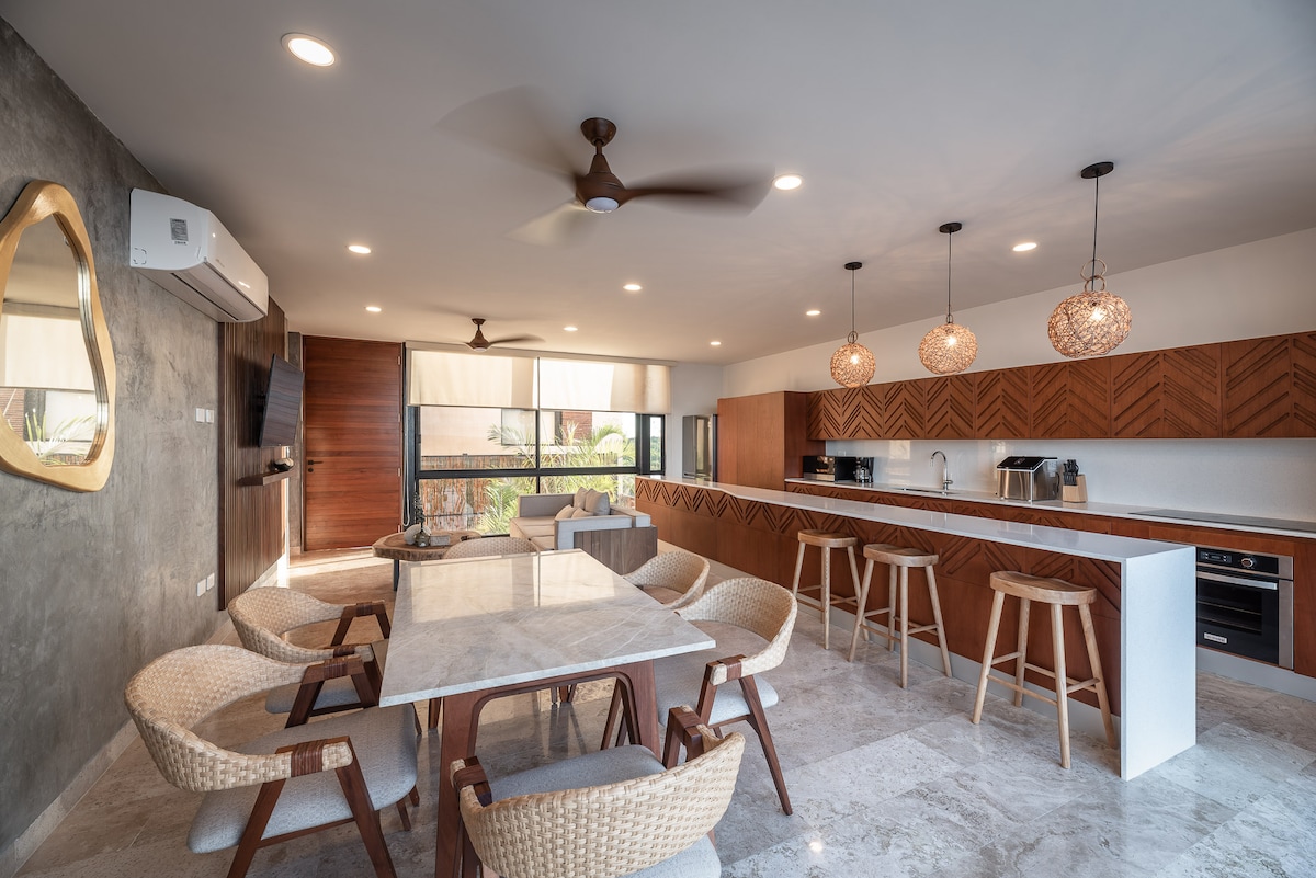 ★ READY FOR APRIL 2026 - PLEASE READ EVERYTHING ★ This is the most desired area of Playa del Carmen @ 38th Street just steps to the famous 5th Ave in front of Beach (1 minute walk to Beach). Peaceful. Great for families & large groups ➤ Surrounded by restaurants & entertainment ➤ Between 5th Ave and Beach ➤ Walk Score 95 out of 100! Close to everything ➤ Private Terrace ➤ 2nd floor ➤ Elevator ➤ Private parking (1) ➤ Rooftop pool ➤ Full gym ➤ Equipped Kitchen ➤ Washer&Dryer