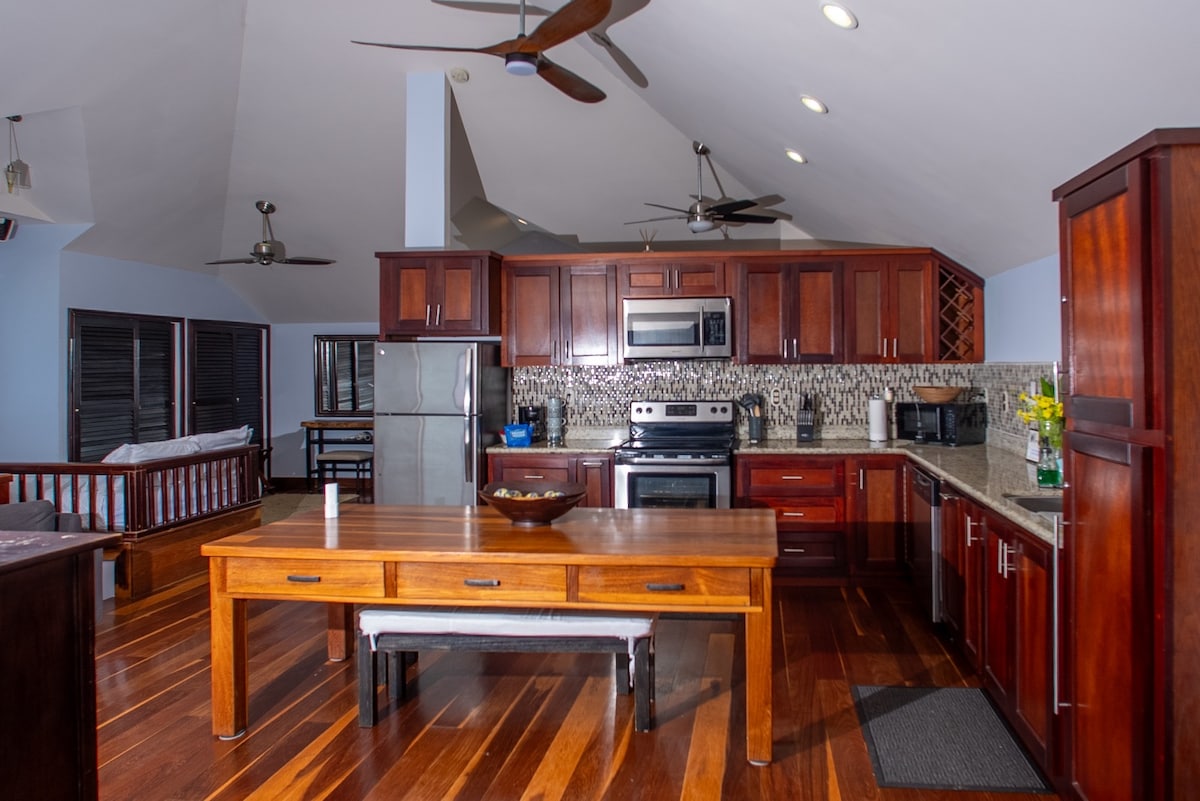 Doživećete udobnost i spokoj u našem prostranom i udobnom APARTMANU ALUNA. Uživajte u opremljenoj kuhinji, bračnom krevetu, Smart TV-u, Wi-Fi mreži od 500 Mbps i terasi sa privatnim đakuzijem sa pogledom na prirodu. Odmorite se u ovom mirnom okruženju, u sklopu kompleksa KUĆA U DŽUNGLI, koji se nalazi u privatnom dijelu iznad 38. ulice, samo 2 bloka od Pete avenije, plaže, restorana i supermarketa.
