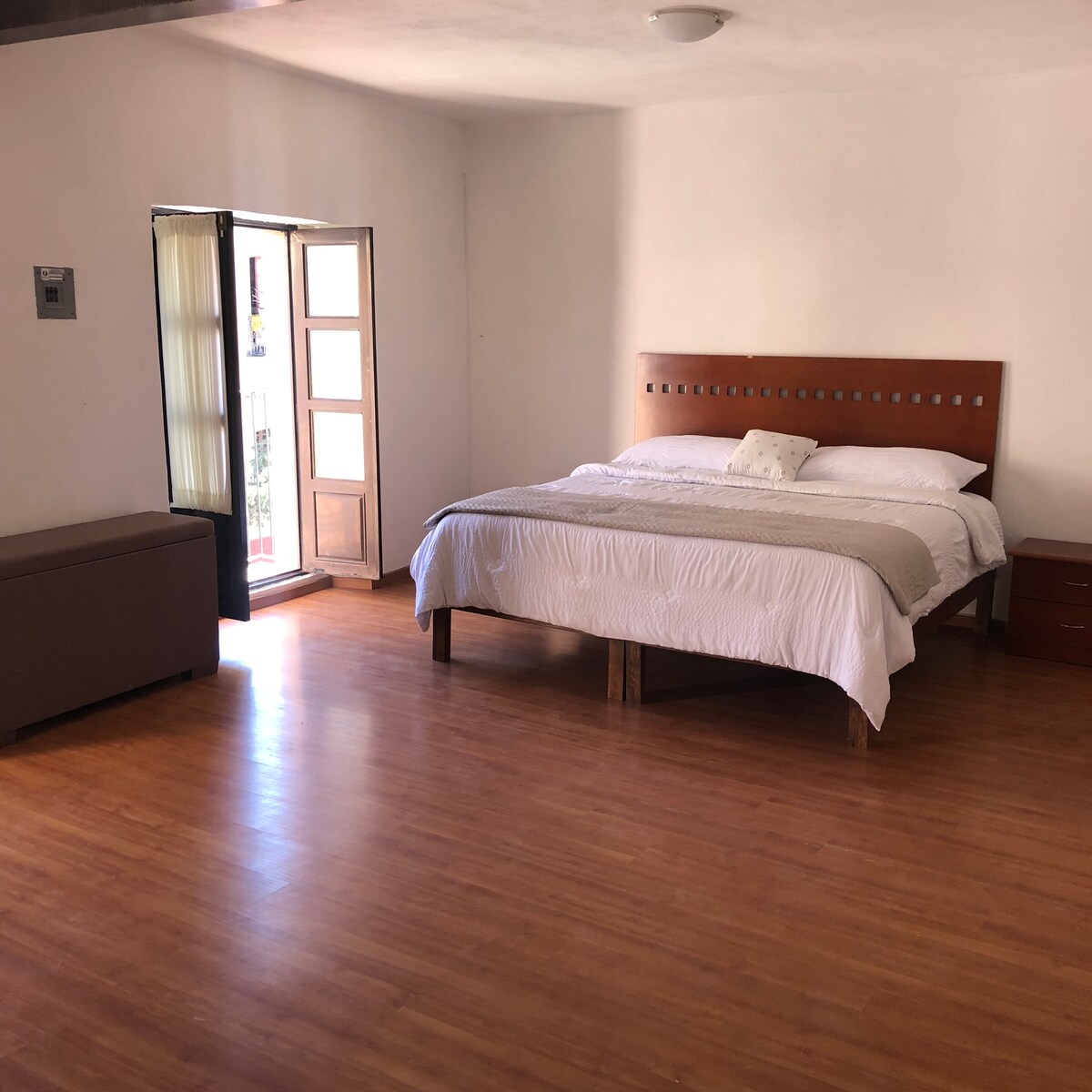 Uživajte u udobnoj sobi koja se nalazi 50 metara od katedrale sa TV-om, frižiderom, mikrotalasnom pećnicom i aparatom za kafu. Odlično mjesto za najviše tri osobe. Tokom događaja kao što su kulturni festival, folklor ili Teatro de calle je savršena destinacija, u blizini je svih turističkih zanimljivosti u gradu. Na samo nekoliko koraka od Katedrala, Plaza de Armas, Teatro Calderón i Avenida Hidalgo. Smještaj osmišljen za vašu maksimalnu udobnost, održavajući istorijski stil zgrade.