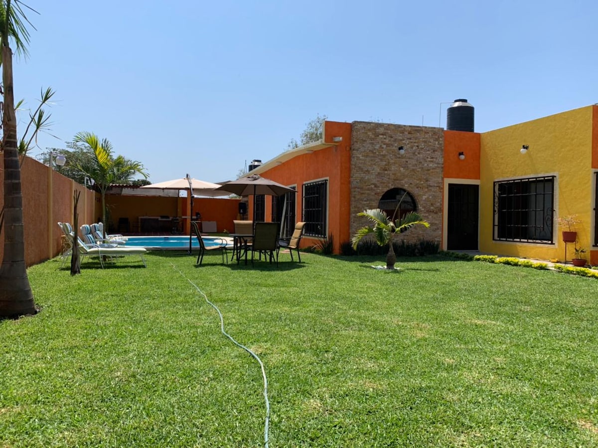 Svideće vam se naša kuća, možete da uživate u nekim danima opuštanja i zabave sa voljenom osobom, porodicom ili grupom prijatelja. Privatni bazen i parking. Udaljen 15 minuta od vodenog parka El Rollo, Tekskitengo i 25 minuta do Jardines de México. Boravite u kući i uživajte pored bazena i posmatrajte boje zalaska i izlaska sunca. Otkrijte zvukove različitih ptica Morelosa dok se budite u ovoj prelepoj državi Meksiku