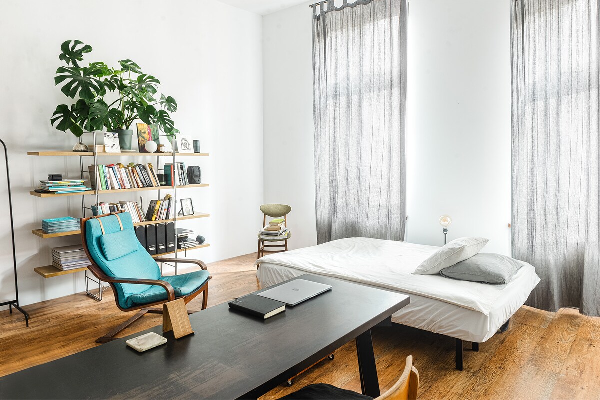 Novi studio sa balkonom i mezaninom u revitalizovanoj zgradi u centru grada, odmah pored Univerziteta umetnosti. Nekoliko minuta do Starog trga. Dobar pristup tramvajem sa Glavne stanice i aerodroma. U zgradi postoji lift. Zgrada je bila mesto zločina u kriminalističkom romanu Rišarda Ćvirleja pod nazivom Imaš ga kao u banci.