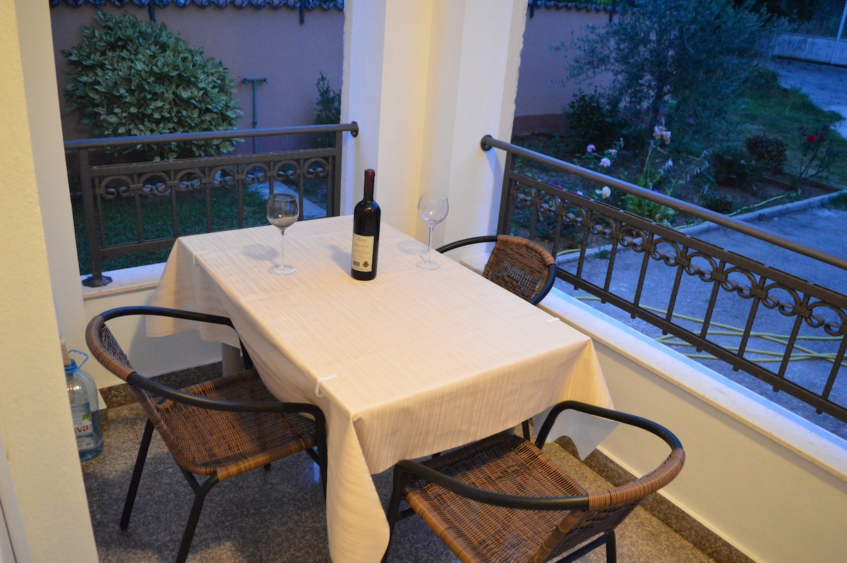 Pozdrav! Dobro došli u moj novouređeni stan koji se nalazi u centralnom dijelu bara, sa 10 minuta hoda do plaže. U blizini je i mnogo prodavnica, a ispred zgrade je autobuska stanica. Stan se nalazi na 4. spratu sa zadivljujućim pogledom i liftom :) Ako imate pitanja, ne ustručavajte se da mi se obratite!