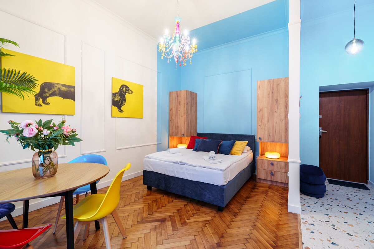 Elegantna garsonjera u srcu Krakova Pozivamo vas u naš moderan i šarenolik studio, koji se nalazi u samom centru Krakova, na samo nekoliko minuta hoda od glavnog trga i atmosferskog Kazimježa. To je savršeno mjesto za kratke i duže boravke u gradu. Studio se nalazi u prizemlju i sastoji se od prostrane spavaće sobe sa udobnim bračnim krevetom, kaučem na razvlačenje, potpuno opremljene čajne kuhinje i modernog kupatila sa velikim tušem.