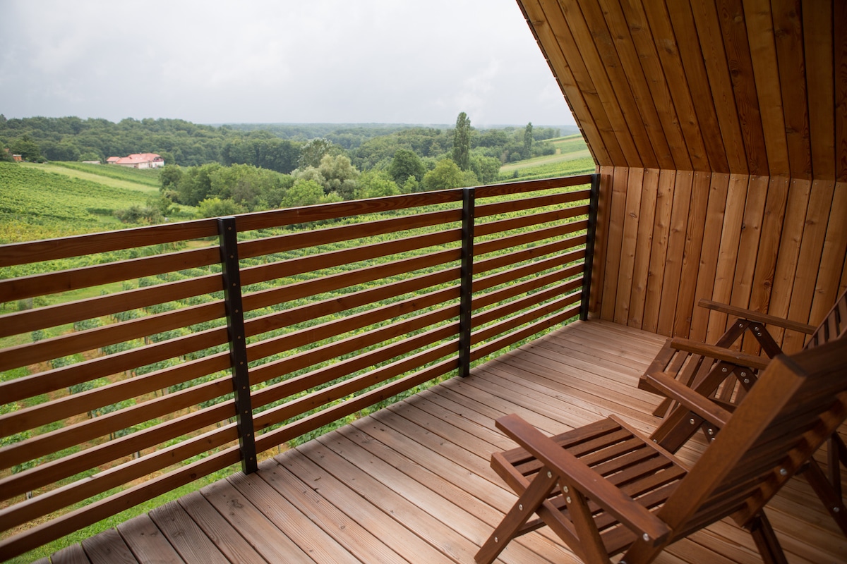 Pobjegnite u živopisnu vilu Vinjard, smještenu na brdu u Sodincima, Velika Nedelja, s pogledom na vinograde i bujna zelena brda. Ova jednosobna vila sa jednom kupatilom je utočište za ljubitelje vina i putnike koji traže mir. Uz udoban kamin, terasu, balkon i luksuzni đakuzi pronaći ćete sve što vam je potrebno za opuštajući odmor.