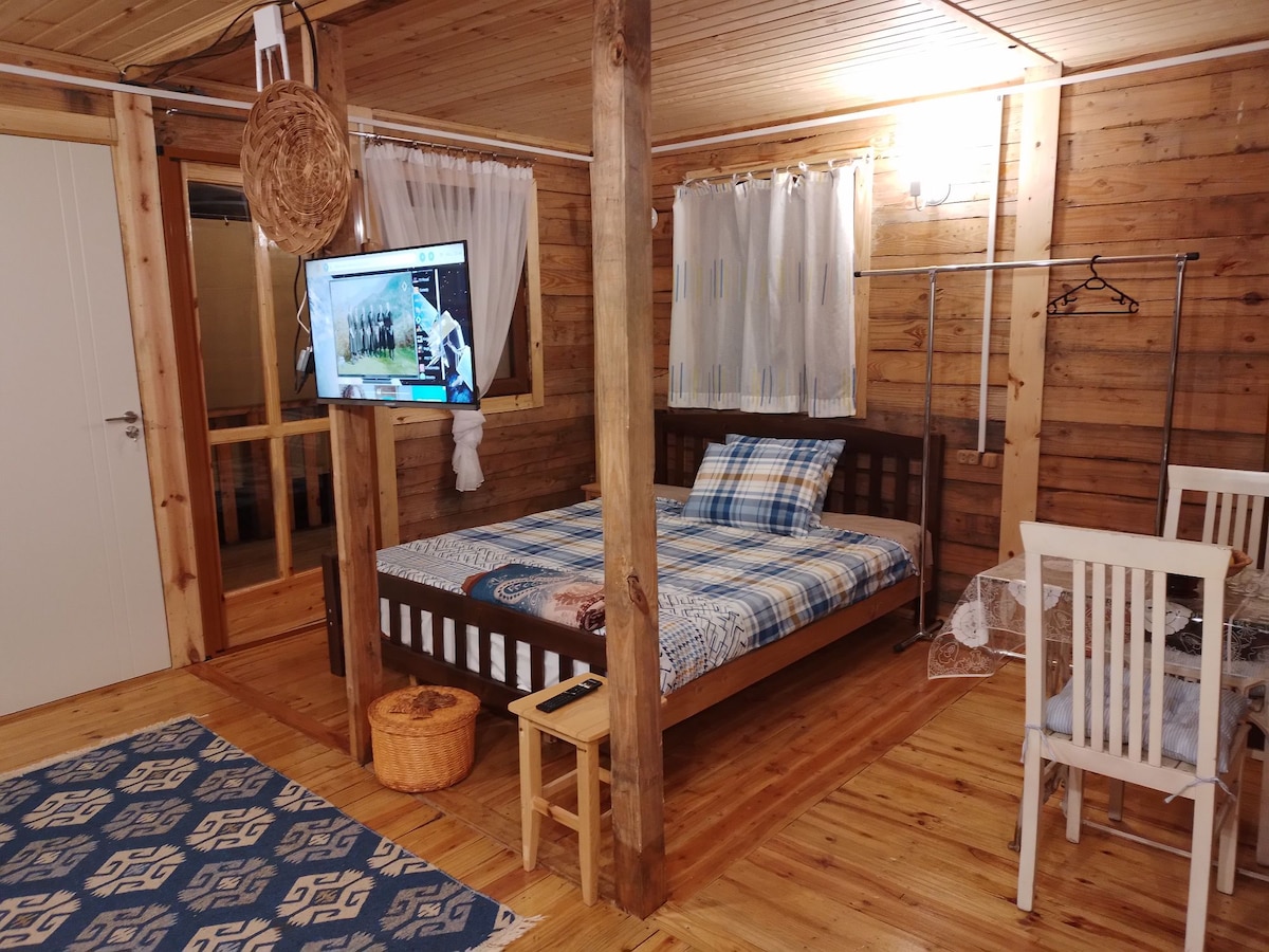 Mirna seoska kuća u obliku slova A u blizini Batumija | Zapanjujući pogledi 🌊🏞️ Pobjegnite iz grada i opustite se u našoj udobnoj seoskoj kućici s kosim krovom, samo 12 km od Batumija, koja se nalazi u selu Akhalsofeli u blizini Gonio-Sarpija Savršeno za porodice ili male grupe — kuća može da primi do 5 gostiju. Potpuno opremljen svime što vam treba: • Topla ćebad, pegla, fen za kosu, posuđe • Veliko privatno dvorište s visećim ležaljkama, ljuljačkama i udobnim natkrivenim prostorom za sjedenje koji posmatra zalazak sunca u bašti, ovo je vaš mirni kutak u blizini Batumija 💫