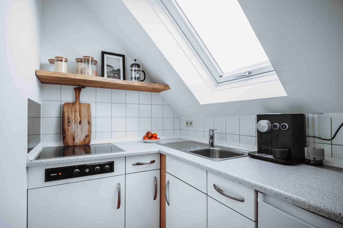 Cozy Apartment in the attic with separate entrance and stairwell, with clean bathroom, Tinykitchen and a balcony overlooking Lake Constance and the Swiss Alps. Enjoy your morning tea or coffee on the balcony and feel like you are on a retreat. A small kitchenette is located outside the room on the hallway area. Private parking in front of the house, also space for caravans and campers. We rent the room on a weeky basis.
