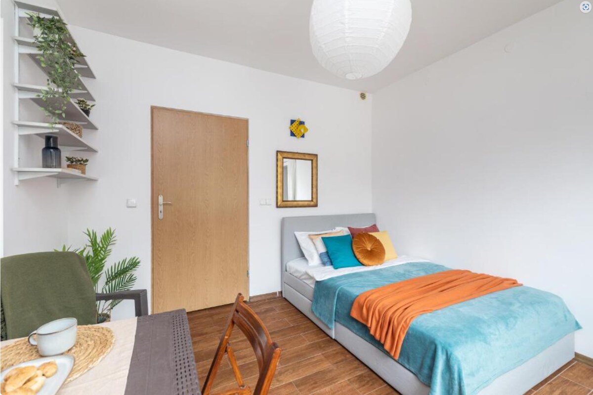 Ako nemate komentare na profilu, nemojte slati zahtjev. 1 dnevni boravak, potpuno opremljena kuhinja, kupatilo, 1 kauč na razvlačenje za 2 osobe. Oko lokacije ima mnogo sadržaja. Do velikih parkova, restorana, supermarketa, kafića, barova, restorana, frizera i sl. možete doći pješice. Nalazi se na 5 minuta od tržnog centra Fort Vola. Dostupan je besplatan Wi-Fi. Vrlo dobro povezan sa centrom grada, udaljenost autobusom, tramvajem ili metroom je 15-20 minuta. Kućni ljubimci nijesu dozvoljeni.
