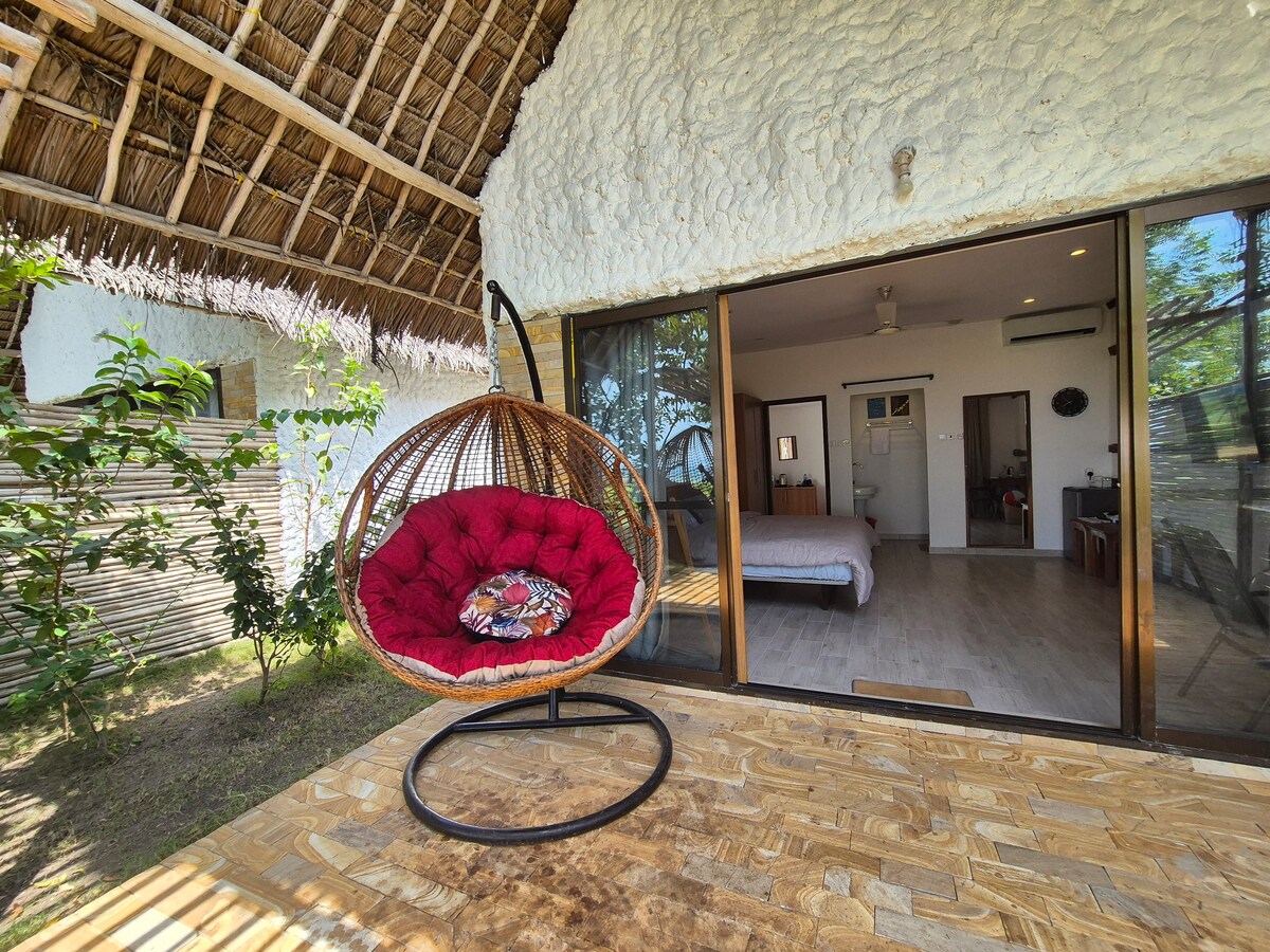 Ovoj seoskoj kućici u stilu svahilija pristupa se kroz privatno dvorište u užurbanom starom gradu Bagamojo. U prizemlju se nalaze dobro opremljena kuhinja i toalet u prizemlju, a na prvom spratu je spavaća soba s bračnim krevetom i malim kupatilom. Salon s otvorenim krovom na drugom spratu je divno mjesto za opuštanje i nudi spektakularan pogled na zalazak sunca većinu večeri. Seoska kuća se nalazi na praktičnoj lokaciji, na samo 5 minuta hoda od plaže, popularnih kafića i umjetničkih radnji.