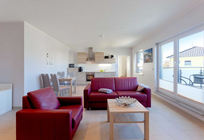 Savršeno za parove ili male porodice na odmoru na Baltičkom moru! Ovaj apartman može da ugosti do 3 osobe sa jednom spavaćom sobom i udobnim kaučem na razvlačenje (uklj. beba/dete). Veliki dnevni boravak i kuhinja ne ostavljaju ništa što se može poželeti: potpuno opremljena kuhinja sa rernom, staklokeramičkom pločom, mašinom za sudove i kombinovanim frižiderom-zamrzivačem; veliki trpezarijski sto; moderan TV; kamin i velika terasa. U velikom kupatilu možete se opustiti u kadi, tuširati se i uživati u sauni.
