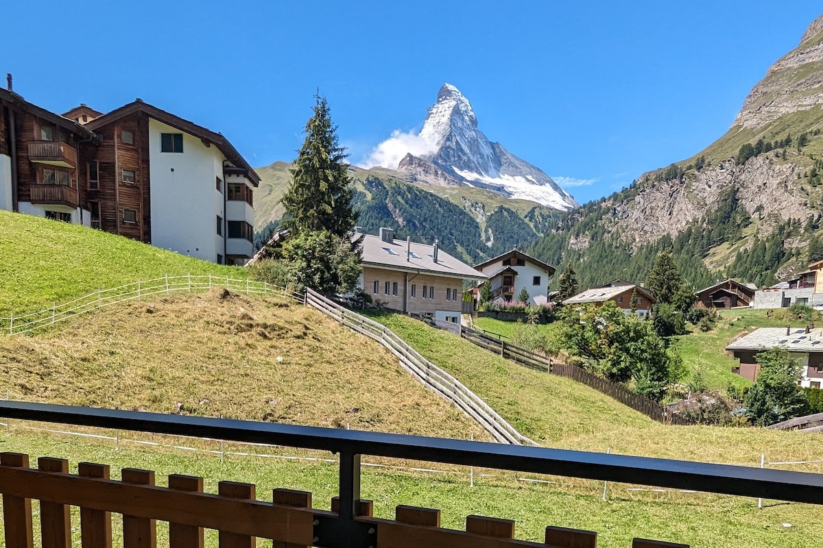 Freshly renovated apartment with a stunning Matterhorn view. 10-minute walk to the lifts and city centre. 1 min walk to the bus stop. Comfortably sleeps 5 people in two bedrooms. The the property is a late-checkout, late-check-in type apartment. Check out is at 2pm and check in is after 6.30 pm (we'll be happy to provide earlier check-in if the schedule allows it).