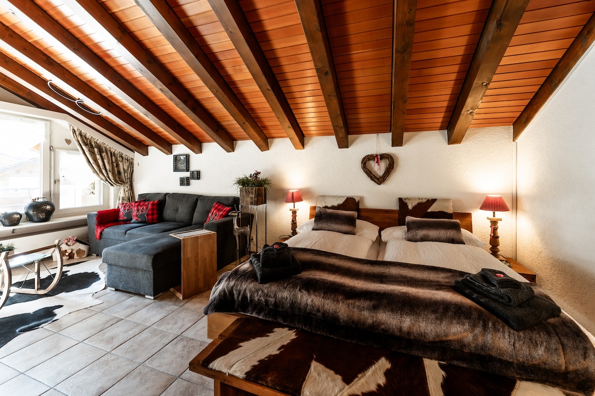 Naš renovirani studio je centralno smešten, na 5-10 minuta hoda od železničke stanice Zermatt. Penjanje stepenicama do kuće (90 stepenica) je uvek vredno toga, jer se smeštaj odlikuje mnogo osvetljenosti i gosobnim pogledom na selo. Pored potpuno opremljene kuhinje, stan je opremljen kadom, udobnim prostorom za sedenje i krevetom od 1,80m. TV sa Apple TV-om i besplatnim Wi-Fi-jem su dostupni, kao i soba za skijanje koja se može zaključati.